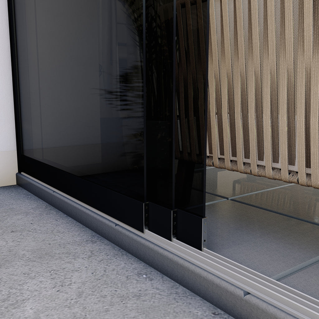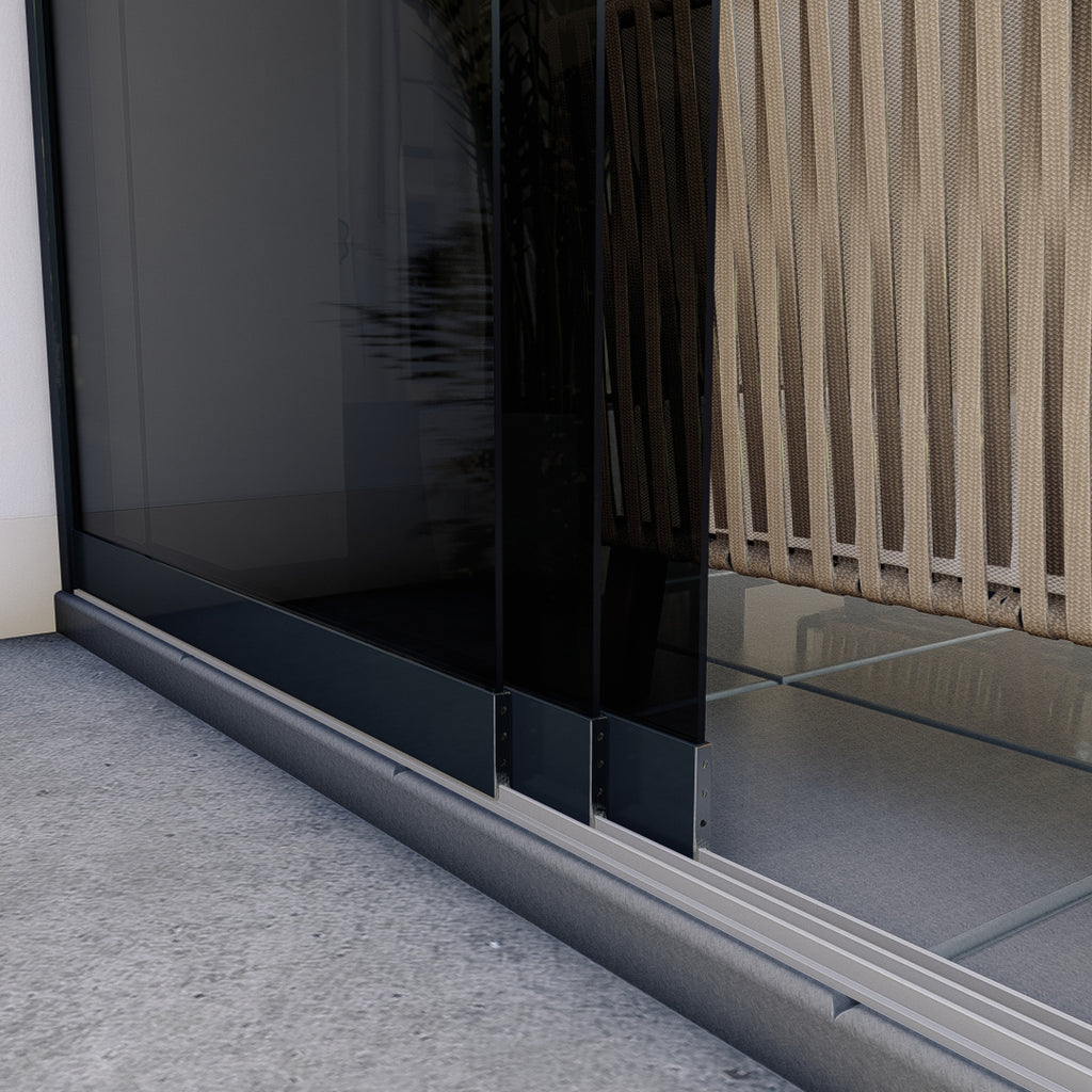 Unsere Schiebewände sind ausschließlich von höchster Qualität und bestehen aus 10mm dickem gehärteten ESG (Einscheibensicherheitsglas).