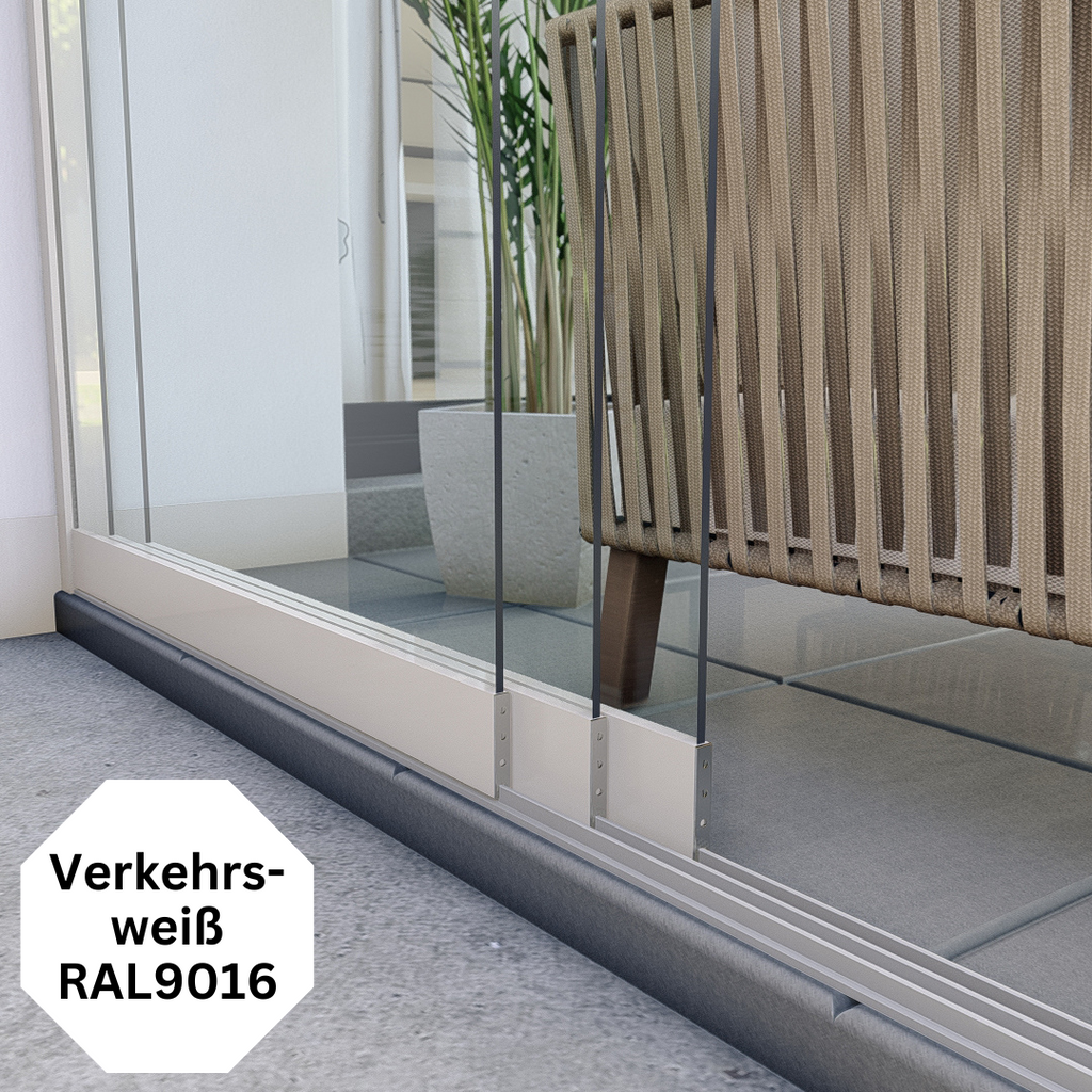 Daher sind bei unseren Glasschiebesystemen standardmäßig immer Zugluftbürsten zwischen den Scheiben, U-Profile als Abschluss und 1 Türgriff gratis im Lieferumfang enthalten!